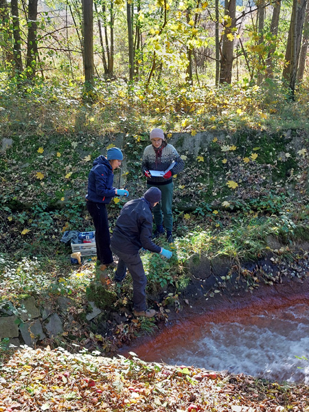 Pobieranie prób do badań z cieku pokopalnianego "Saturn".
